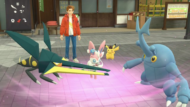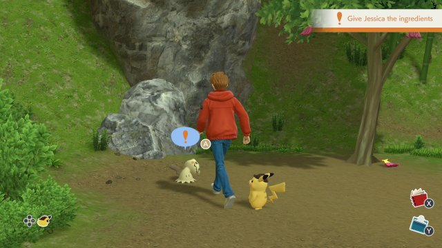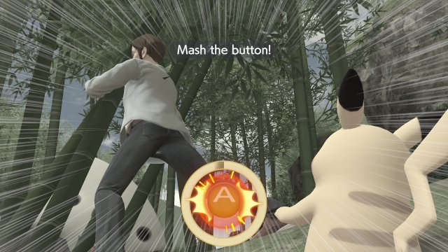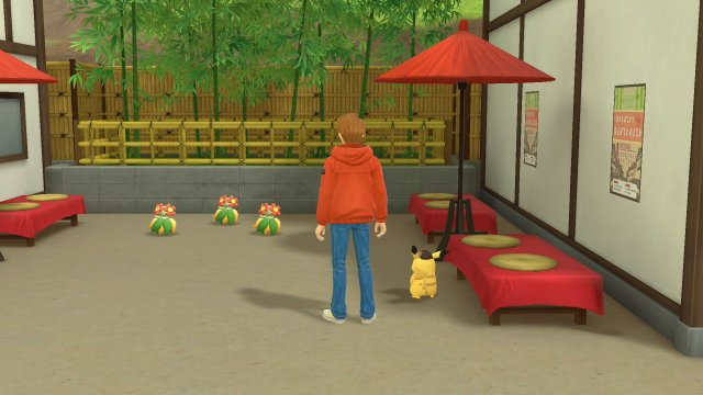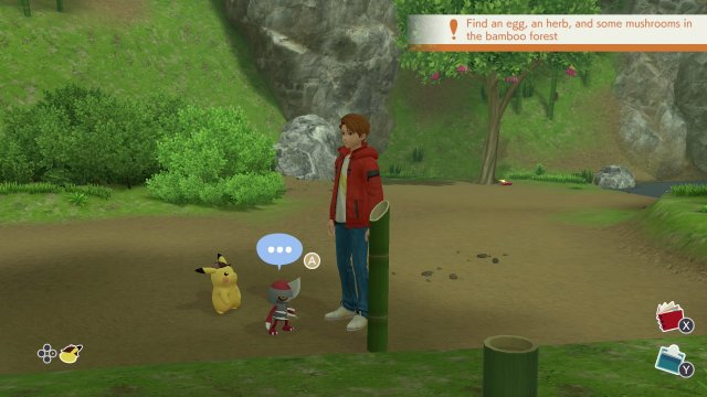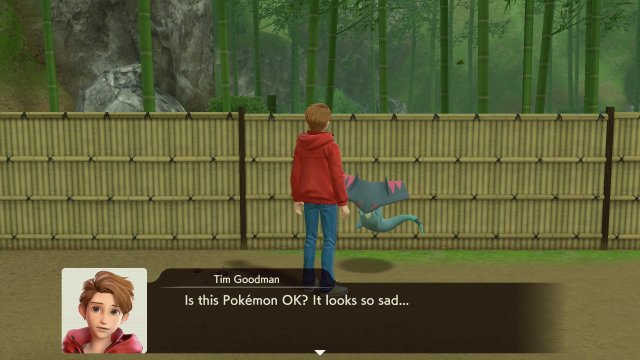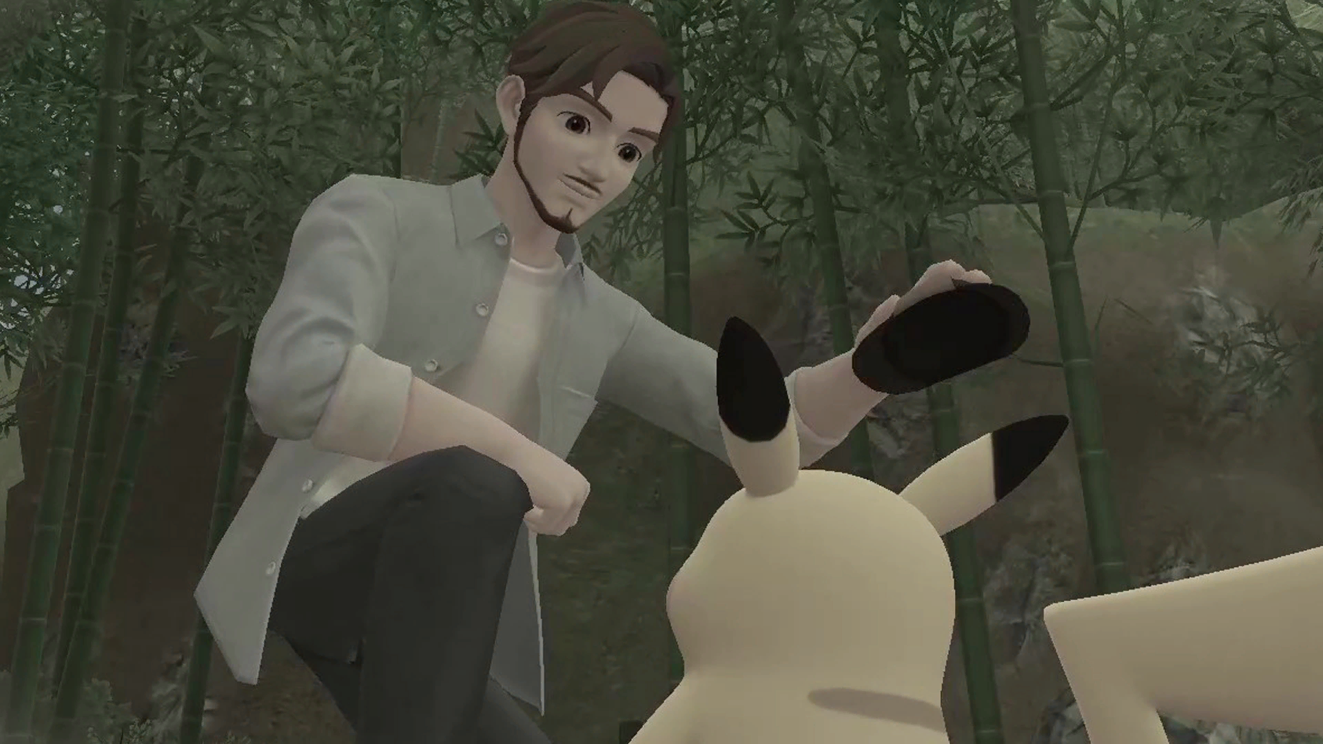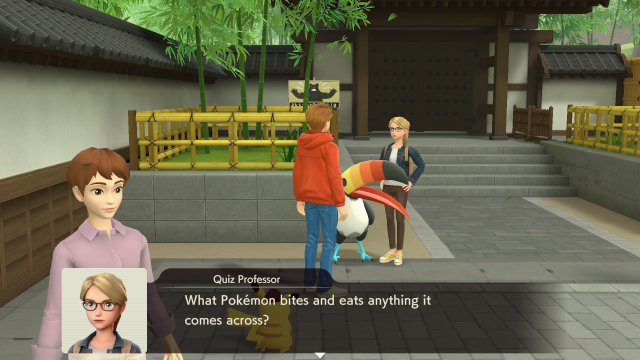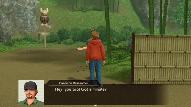 Encuentra a un Pokémon muy esquivo Dicen que en el bosque de bambú hay un Pokémon muy extraño y difícil de ver. No se sabe dónde se esconde ni qué aspecto tiene, pero, si lograras verlo, informa de inmediato al experto. |