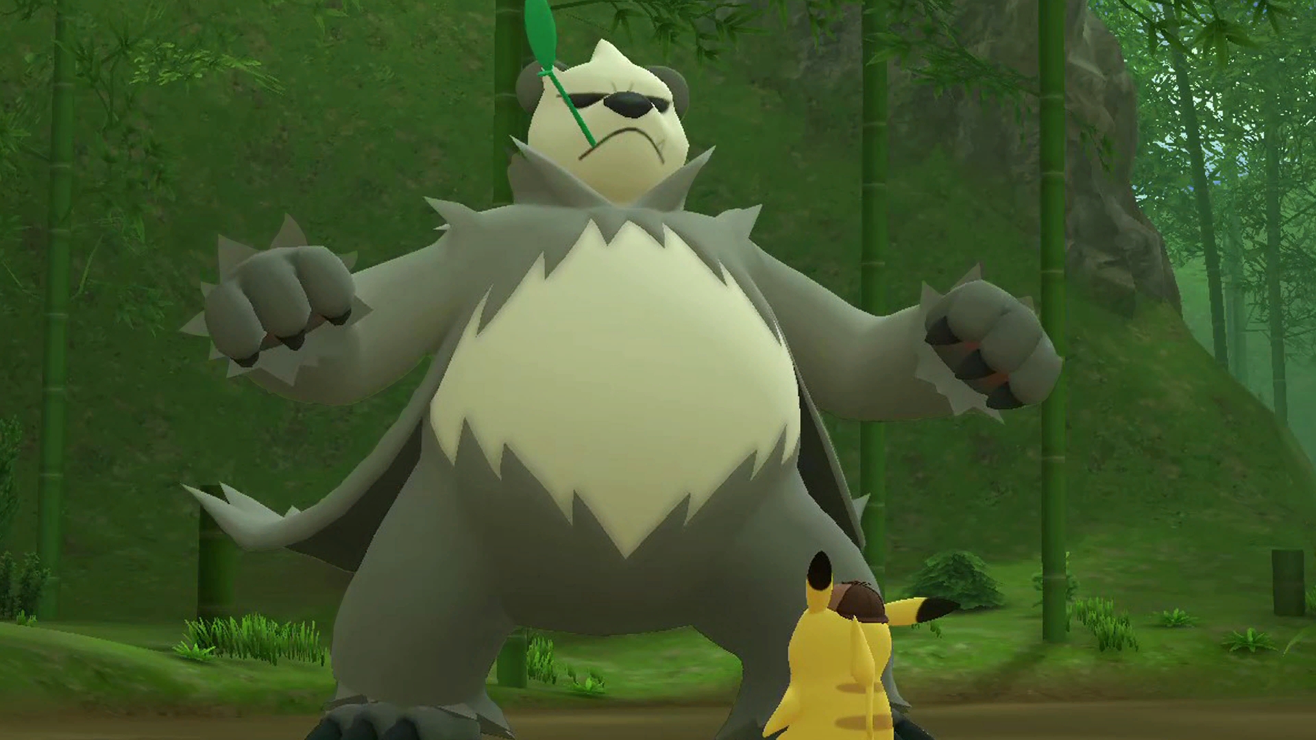 Pikachu ve al Pangoro con el que coincidió en la comisaría. Su prodigiosa fuerza le vendrá de perlas.