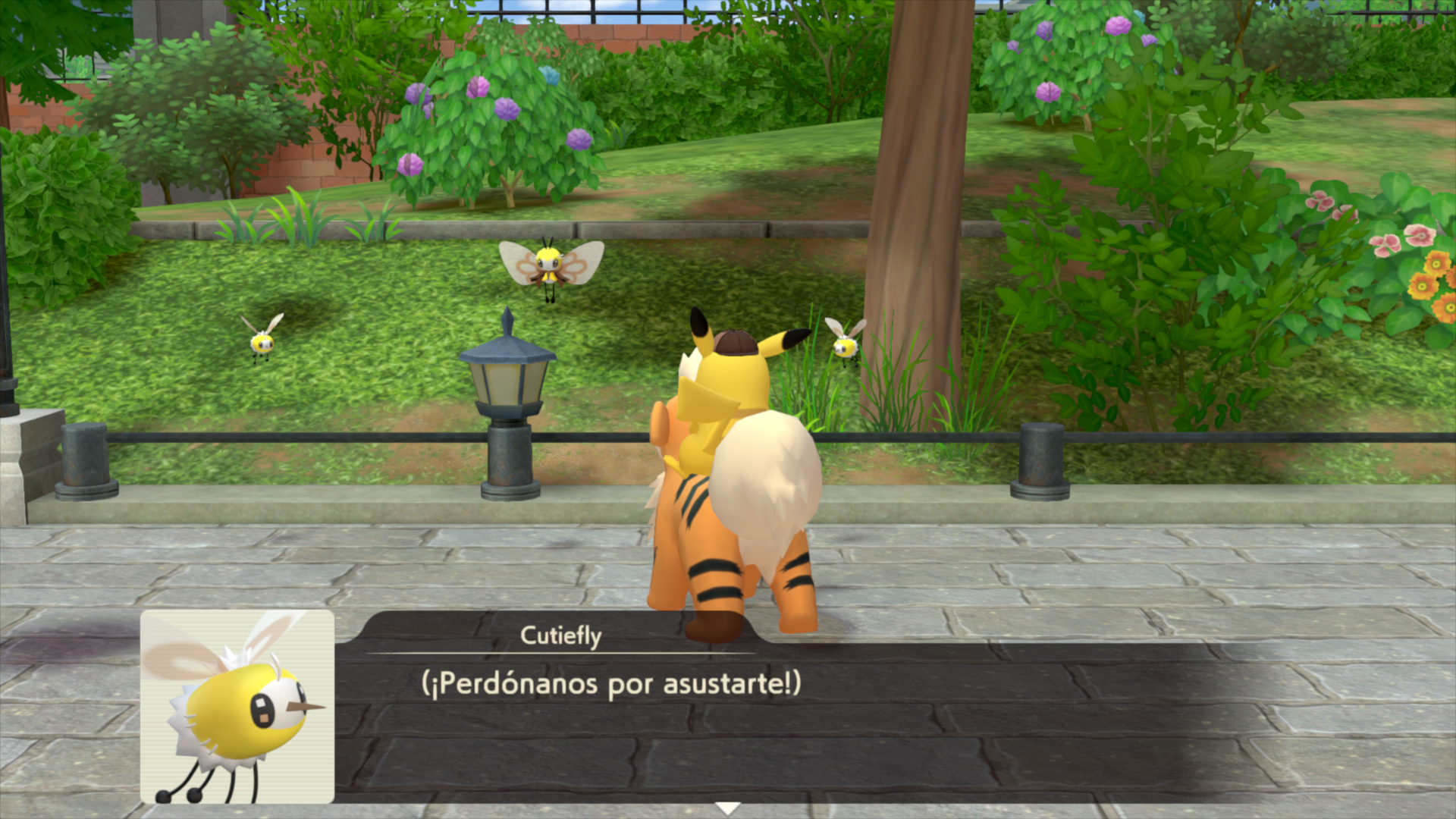 Encuentra a las Cutiefly que fueron a por néctar Ribombee está preocupada por las Cutiefly que fueron a buscar néctar y no han vuelto. Busca a las Cutiefly desaparecidas con ayuda de Growlithe. |
