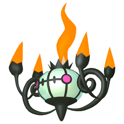 Chandelure (シャンデラ), el Pokémon Señuelo. Es el número #0609 en la Pokédex Nacional.