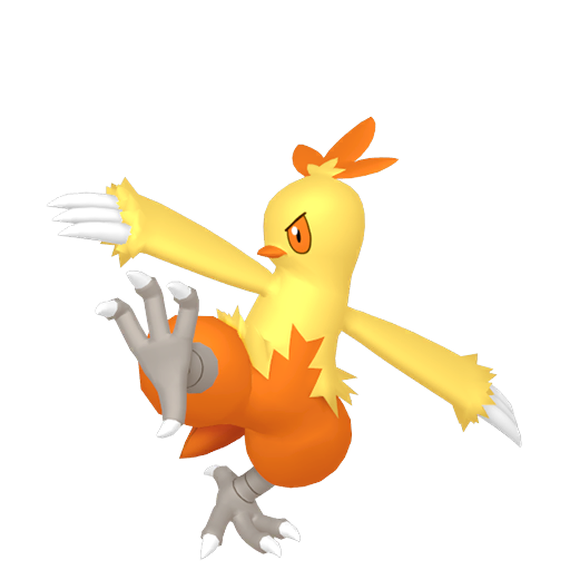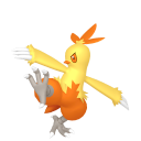 COMBUSKEN battles with the intensely hot flames it spews from its beak and with outstandingly destructive kicks. This POKéMON’s cry is very loud and distracting.
