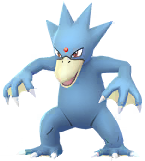 Golduck alcanza una velocidad de vértigo gracias a las aletas palmípedas de las extremidades y a la forma aerodinámica de su cuerpo. Realmente, la velocidad de este Pokémon supera la de cualquier nadador.