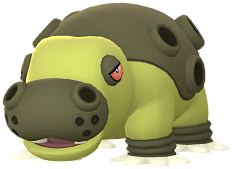 Hippowdon, el Pokémon Peso Pesado. Es el número #0450 en la Pokédex Nacional.