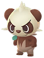 Pancham, el Pokémon Juguetón. Es el número #0674 en la Pokédex Nacional.