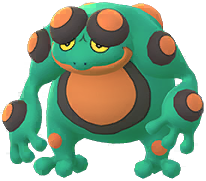 Seismitoad, el Pokémon Vibrante. Es el número #0537 en la Pokédex Nacional.