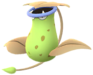 Victreebel tiene una enredadera que le sale de la cabeza y que agita a modo de señuelo para atraer a sus presas y así engullirlas por sorpresa cuando estas se aproximan incautas.
