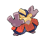 Rubí HARIYAMA practica los empujones que da estirando los brazos allá por donde va. Este POKéMON puede partir por la mitad un poste de teléfono de un enérgico golpe con los brazos estirados y las manos abiertas.