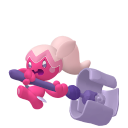 Convierte montañas de chatarra en su guarida. Estos Pokémon suelen medir la fuerza de sus martillos golpeándolos contra los de los demás.
