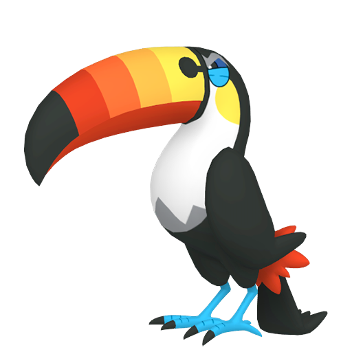 Toucannon (ドデカバシ), el Pokémon Cañón. Es el número #0733 en la Pokédex Nacional.