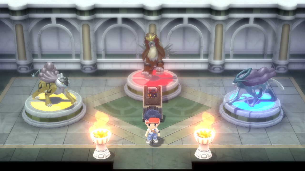 La Losa Johto de la Sala de la Sala de Johto es exclusiva de Diamante Brillante, y podrás acceder a ella tras completar la Sala del Inicio. Encontrarás a Raikou, Entei y Suicune.