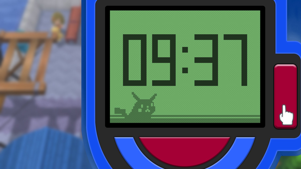 Simple reloj digital con la imagen de Pikachu en la esquina inferior izquierda. Se ilumina al pulsar sobre la pantalla.