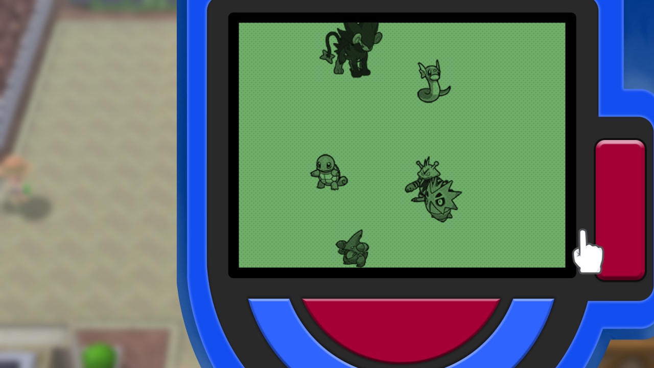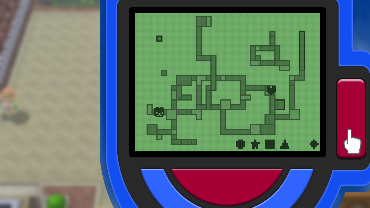 Mapa que muestra en tiempo real tu ubicación y la de los Pokémon salvajes que estén corriendo por Sinnoh, como Cresselia o Mesprit. También puedes colocar hasta 6 marcadores propios.