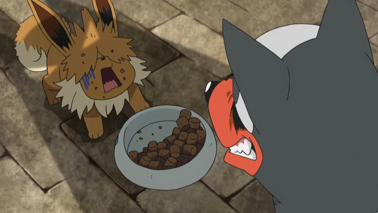 All those bright lights in a crowded city can be so overwhelming! How’s a little Eevee to know that the food bowl belonged to a big Houndour?