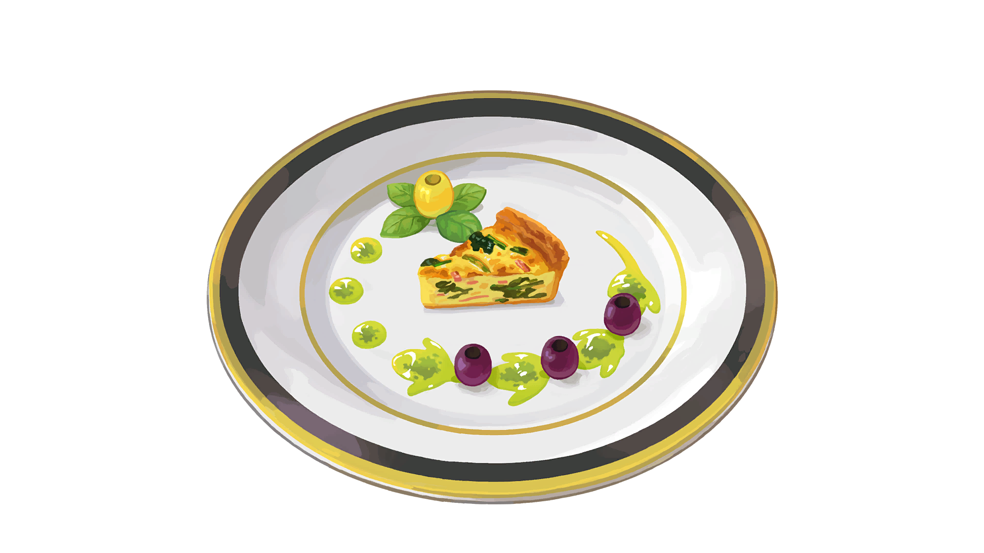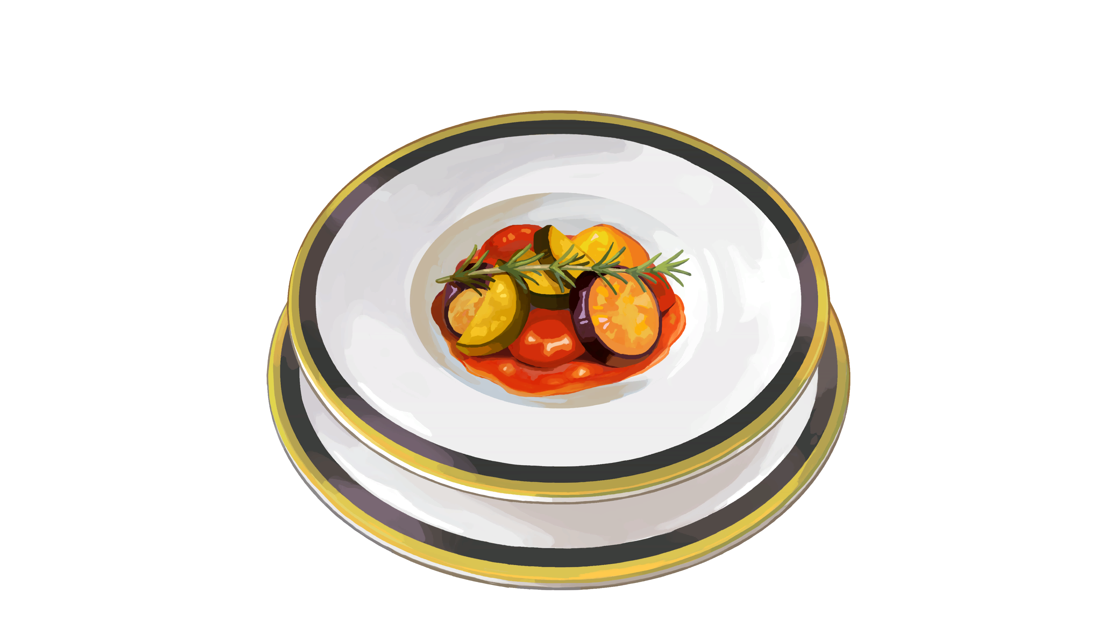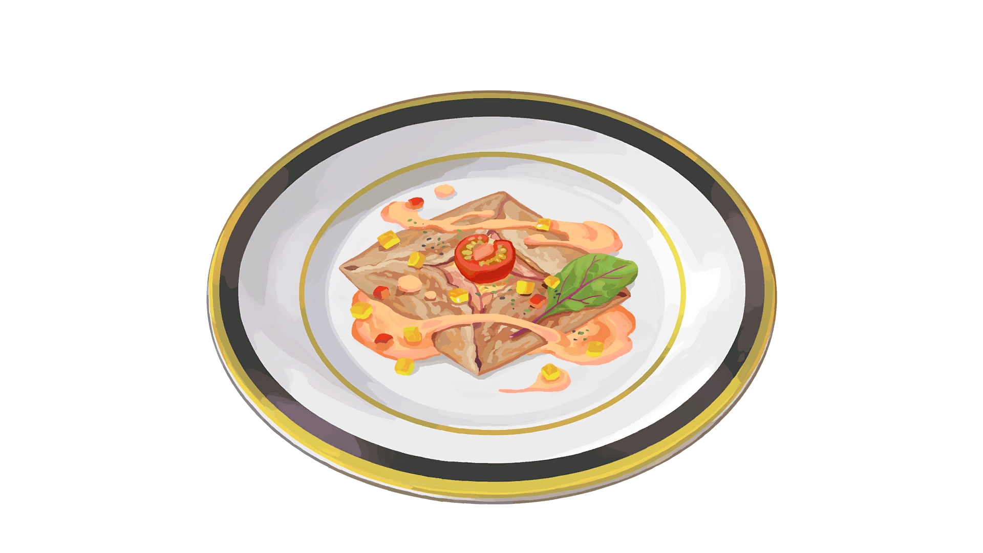 Un plato que recrea una especialidad local catada durante un viaje por Hoenn.