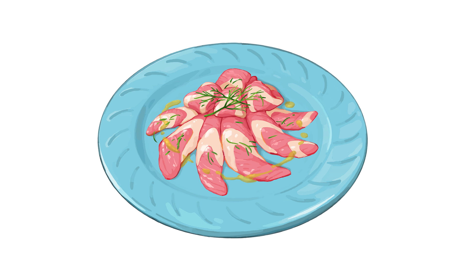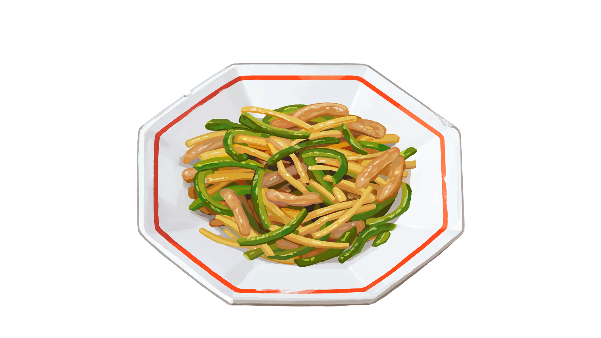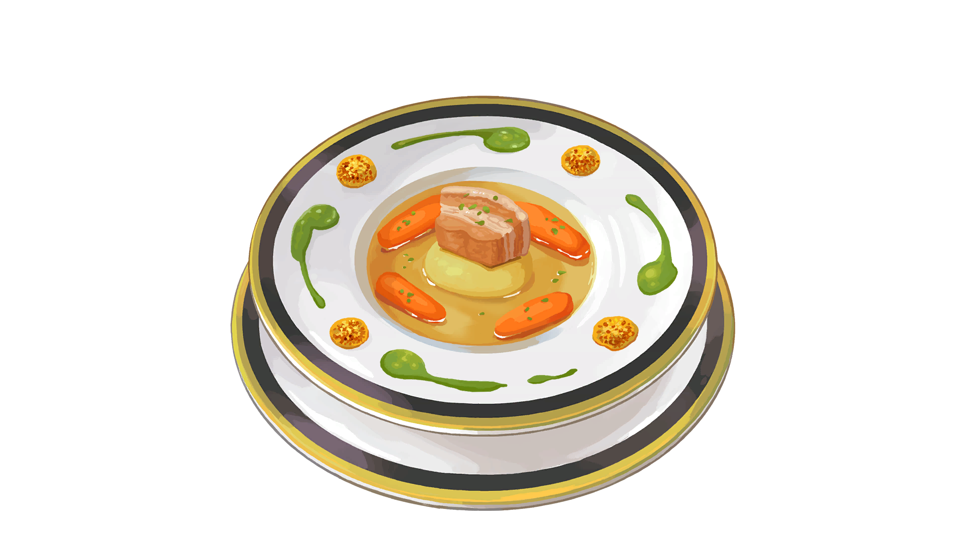 Un plato que recrea una especialidad local catada durante un viaje por Hoenn.