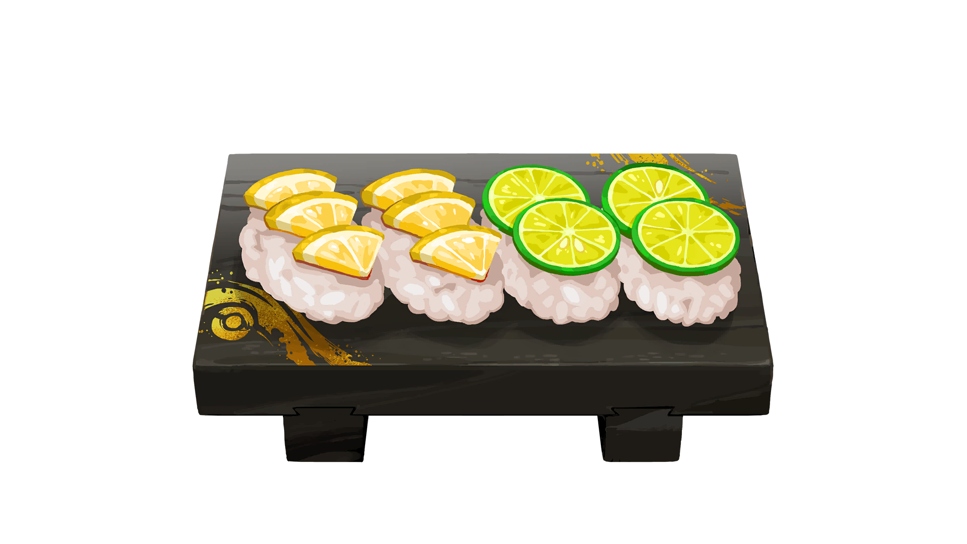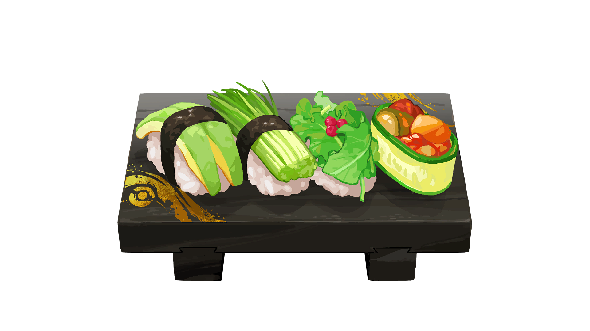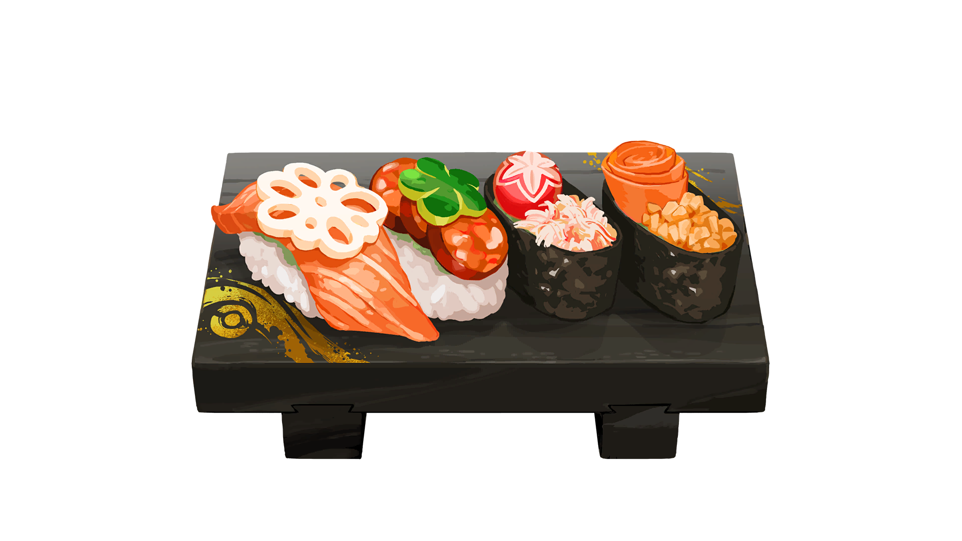 Cuatro piezas distintas de sushi con diseños muy cucos. Por alguna razón, todas tienen un sabor bastante dulce.