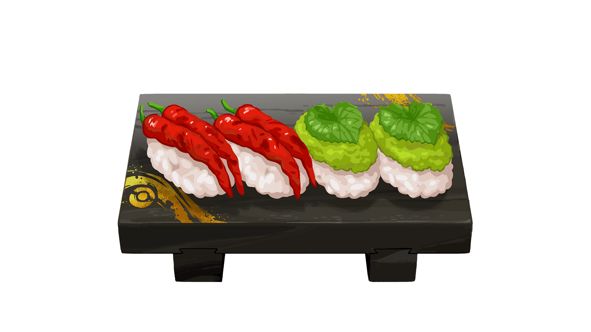 Cuatro piezas distintas de sushi delicadas como las flores. Por alguna razón, todas tienen un sabor bastante picante.