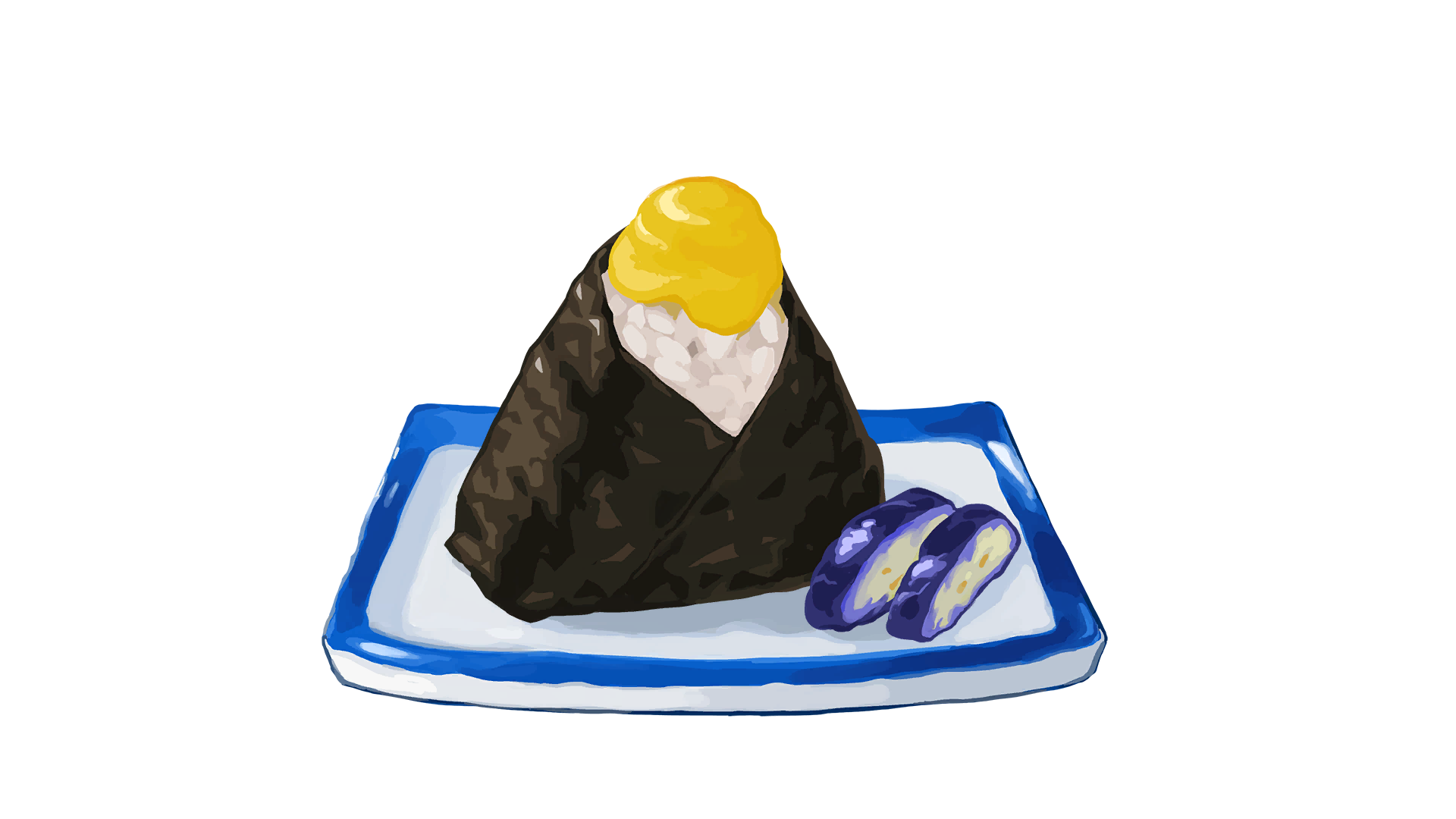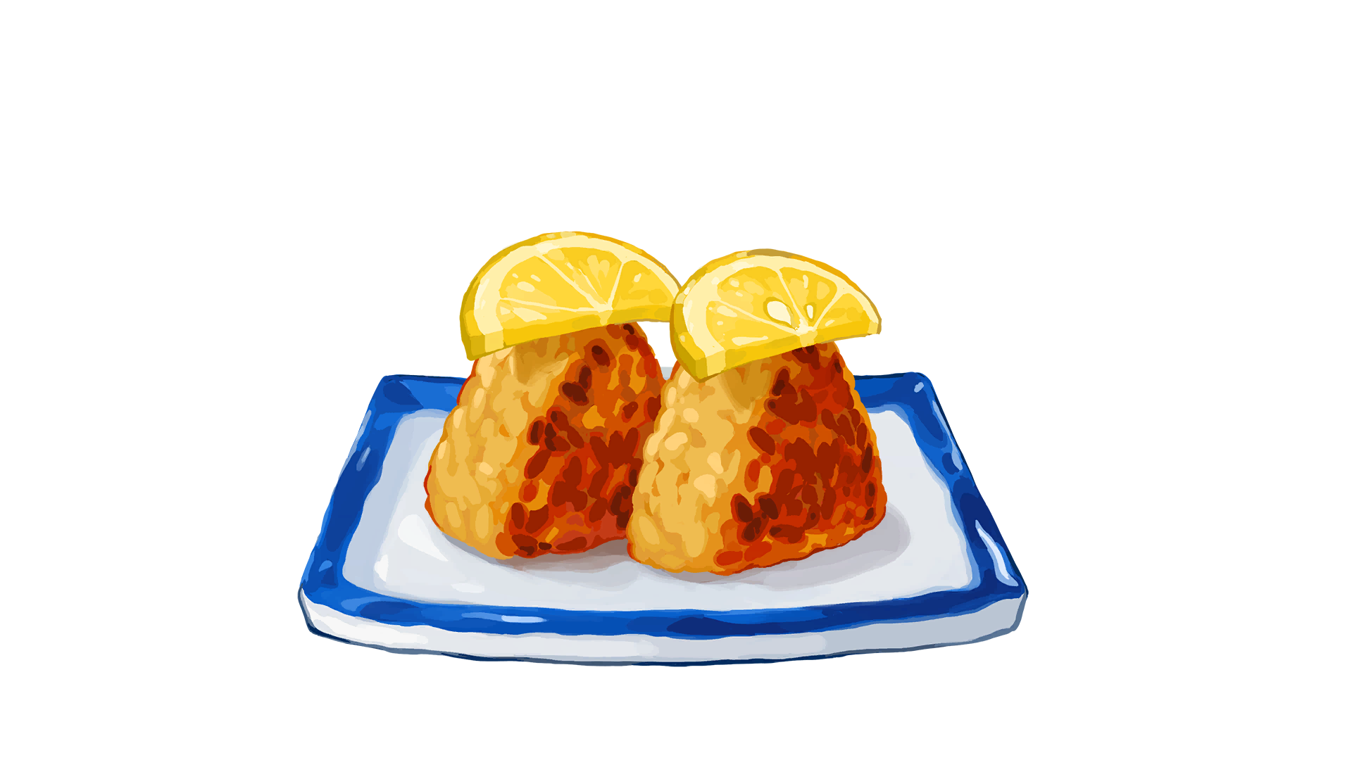 Un par de bolas de arroz en su punto justo de tostado, glaseadas con un fragante aliño a base de salsa de soja.