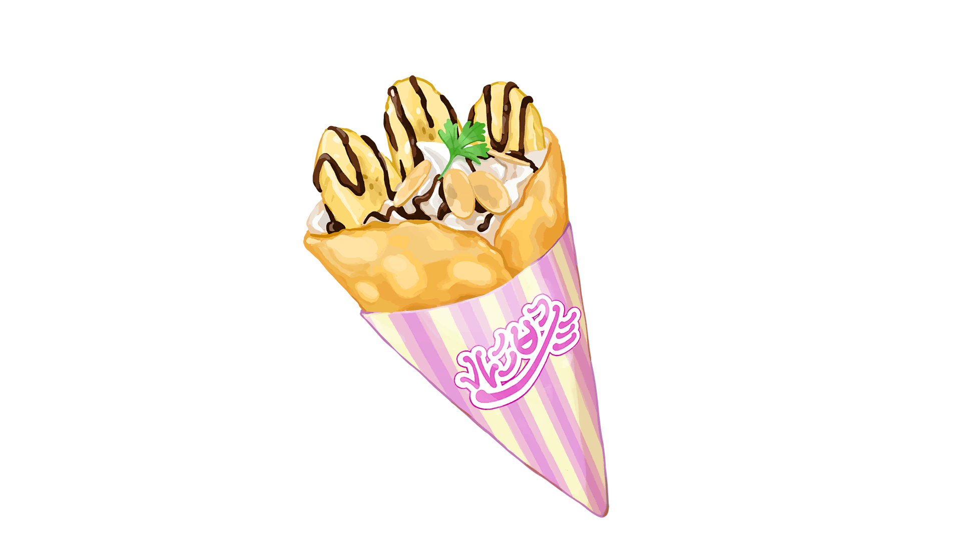 Una crepe rellena de plátano y chocolate, receta especial importada de Kanto.