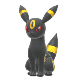 Umbreon, con sus ojos rojos y sus anillos dorados que brillan como la luna, velará por ti incluso en la oscuridad. |