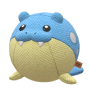Este peluche de Sandshrew tiene la parte de atrás dura, pero la barriguita es muy blandita. Dan ganas de tocarla. |