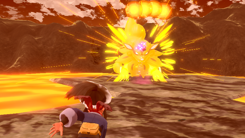 El cuerpo de los Pokémon enfurecidos aumenta de tamaño y brilla con fuerza. Derrotarlos en combate no bastará para calmarlos. Tendrás que tirarles calmasferas hechas con su comida favorita.