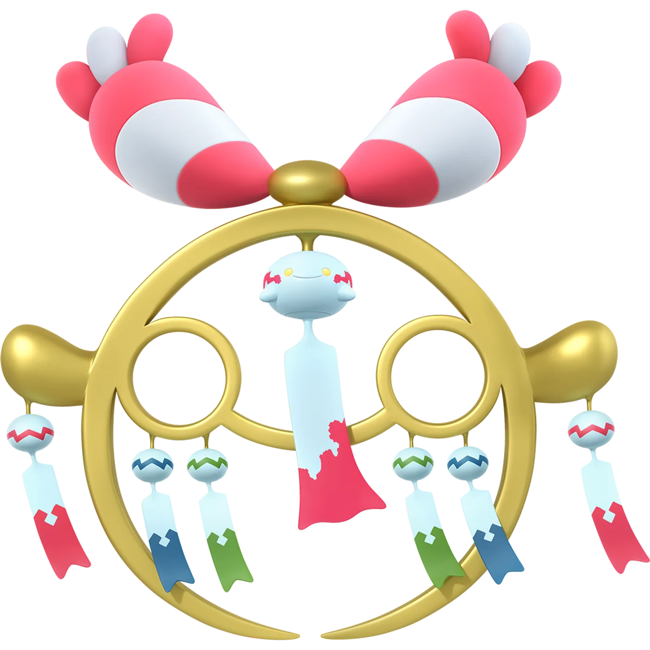 En esta forma, Chimecho está flanqueado por seis copias de sí mismo. Mega-Chimecho siempre está en movimiento, incluso cuando no hay viento. Cuando grita, las copias se unen y resuenan con él. Estos sonidos se superponen y reverberan para formar una onda sónica intensísima.