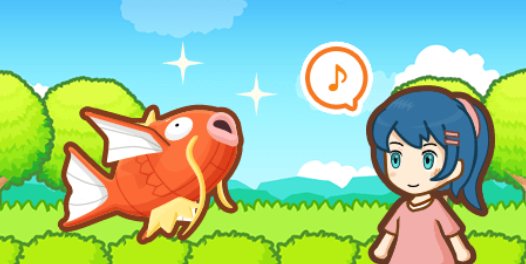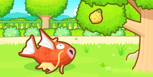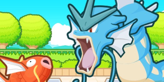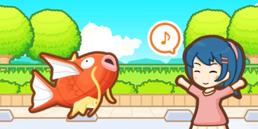 El pobre se emociona y salta grácil. Cuando Pidgeotto lo ve, piensa: "¡Una presa fácil!" Desbloqueo: Hacer saltar seguidamente a Magikarp en la superficie del vivero |