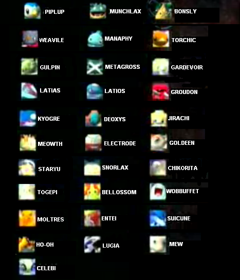 EDIT 2 Kazuki: Gracias a Matt por la ayuda ya hemos logrado descifrar todos los Pokémon que aparecen en los créditos de SSBB.