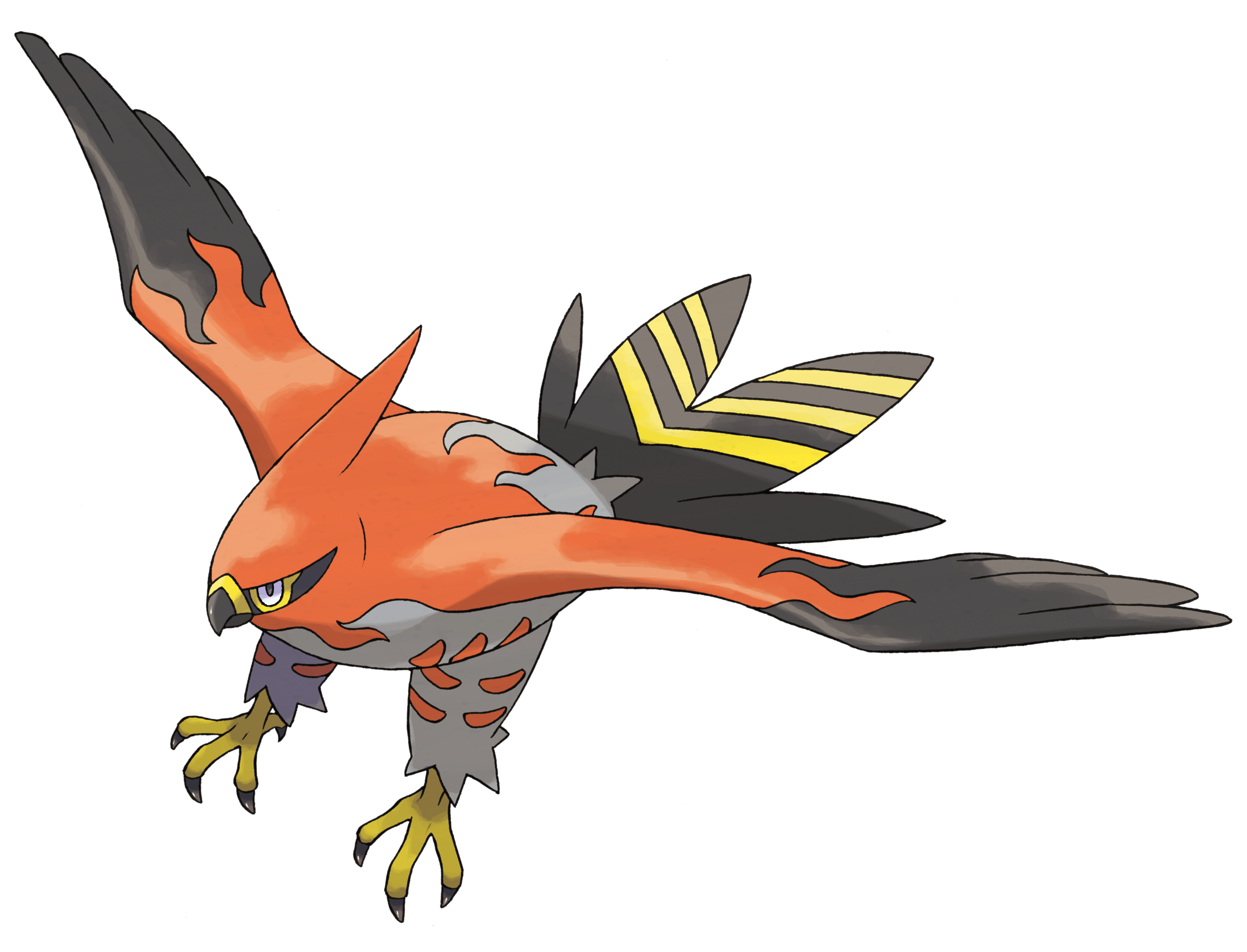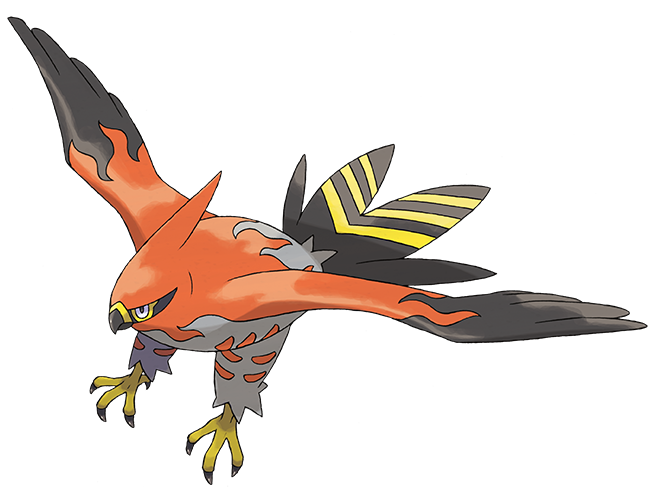 Talonflame, una poderosa evolución de Fletchling, ¡es un Pokémon de tipo Fuego y Volador que presenta una celeridad y una potencia de fuego increíbles! Se tira en picado sobre sus oponentes para luego atacarles con patadas devastadoras.