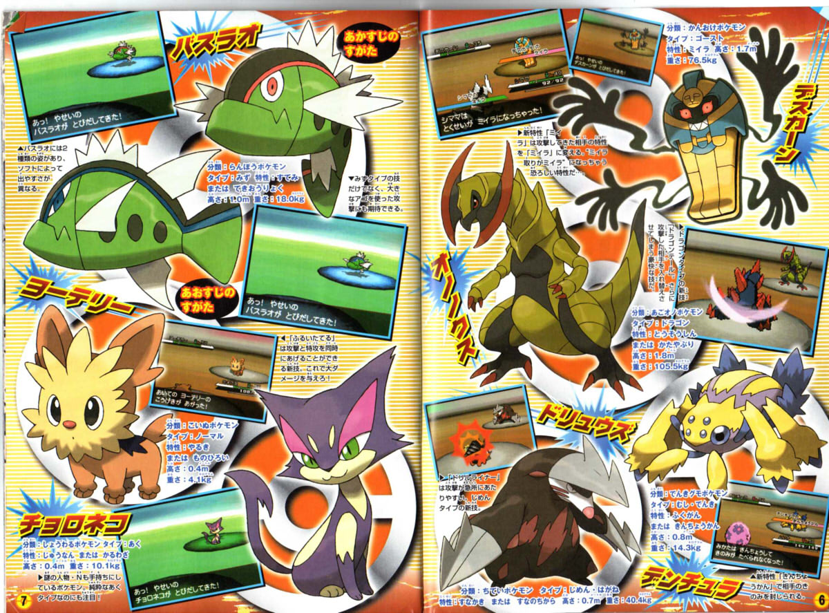 Este mes se han revelado 18 nuevos Pokémon, 8 de los cuales no habían sido visto antes, y mucha información sobre los juegos. A continuación os dejamos toda la información dividida por páginas, tomadas de PokéBeach: