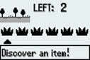 Tendremos 2 oportunidades de encontrar un objeto entre los 6 trozos de hierba. Al seleccionar el primero, si no encontramos nada, nos avisarán de que hay un objeto muy cerca, o lejos. Solo podremos almacenar 3 objetos a la vez.