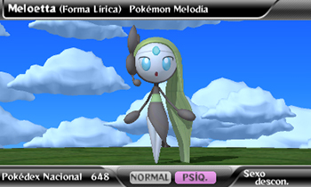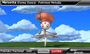 Introduce la palabra clave que hay más abajo para registrar al Pokémon Melodía Meloetta en tu copia de la aplicación Pokédex 3D Pro. Una vez que hayas introducido la palabra clave, podrás tener acceso a toda la información sobre Meloetta, incluyendo sus características, movimientos que puede aprender y mucho más.