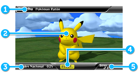 - Aspecto: Usa el joystick para ver el Pokémon desde distintos ángulos. Pulsa L o R para alejar o acercar la imagen.