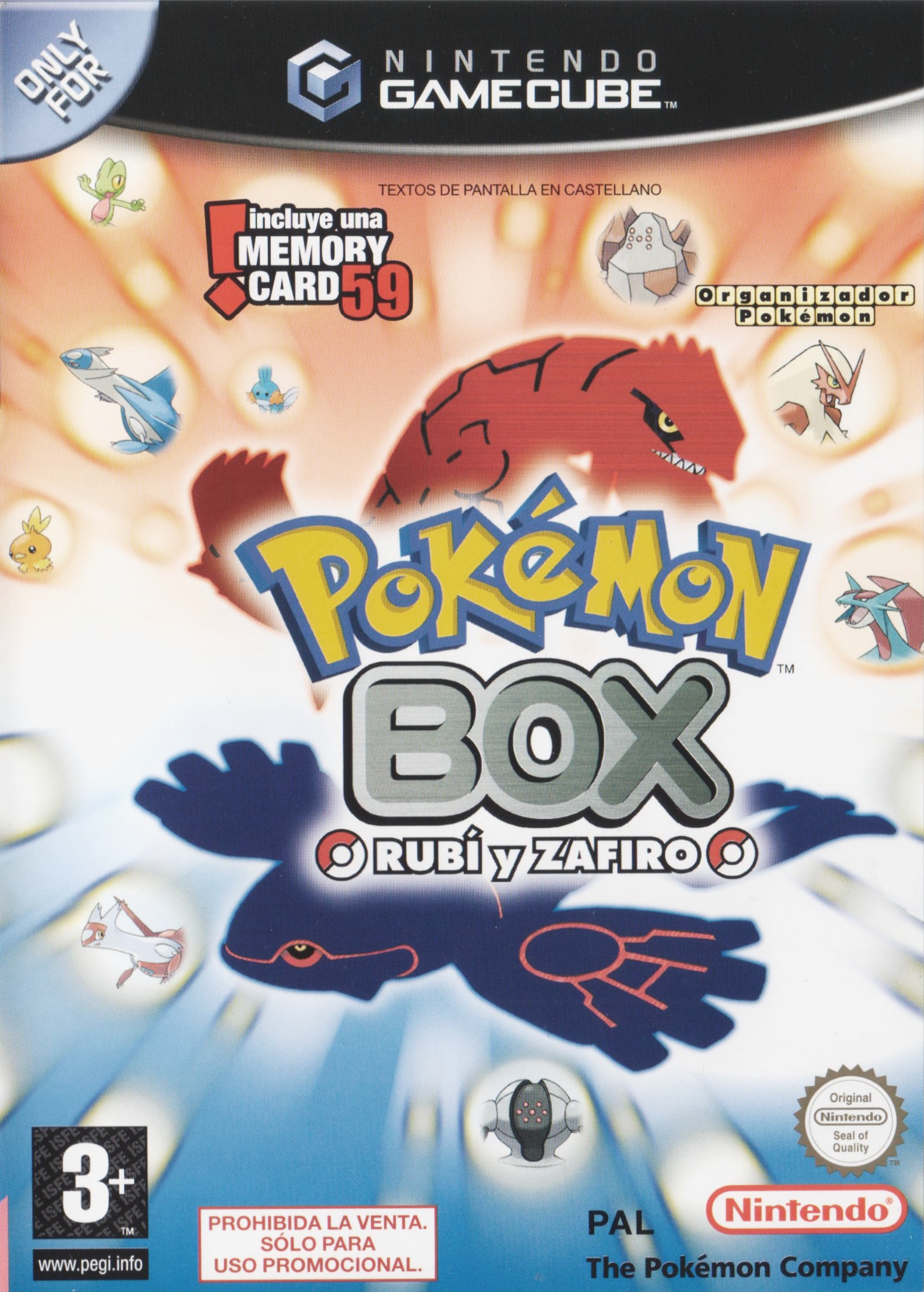Pokémon Box: Rubí y Zafiro (ポケモンボックス ルビー&サファイア), para GameCube, es un sistema de almacenamiento para los juegos principales de GBA: Rubí, Zafiro, Esmeralda, Rojo Fuego y Verde Hoja.