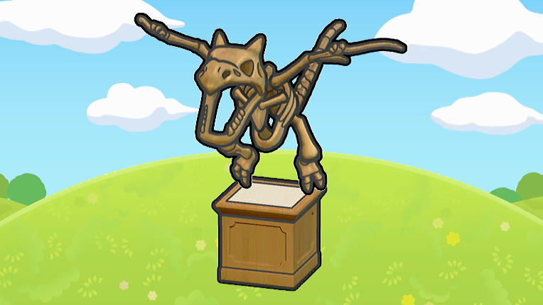 Exposición de fósil alado es el hábitat #193 de Pokémon Pokopia. El fósil de un Pokémon prehistórico en un expositor. El magnífico esqueleto del rey de los cielos.