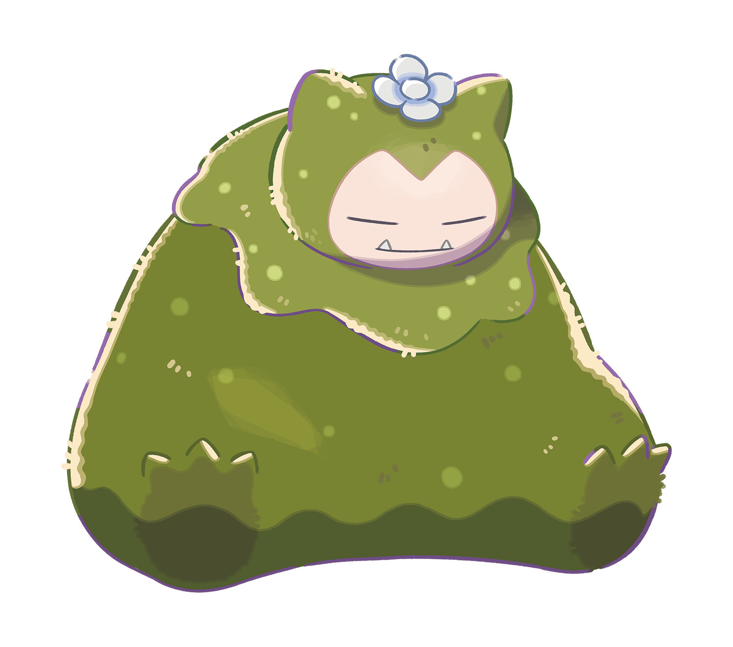 A este Snorlax le ha crecido musgo por todo el cuerpo, y parece que hasta le ha brotado una florecilla en la cabeza. Quizá haya estado dormido durante mucho tiempo.