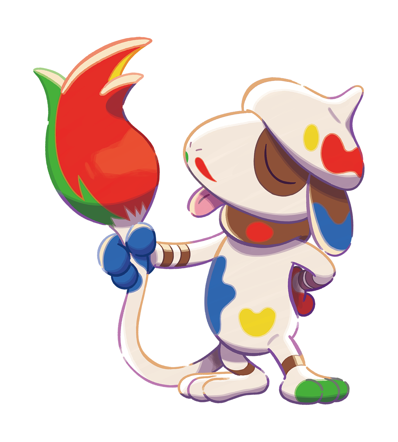 Un Smeargle con salpicaduras de colores muy llamativos por todo el cuerpo. Cuando usa su cola como pincel, parece un auténtico artista.