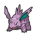 Nidoking (ニドキング), el Pokémon Taladro. Su piel dura como el acero refuerza el impacto al cargar contra sus enemigos. Su cuerno puede atravesar hasta diamantes.