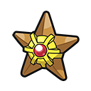 Starmie (スターミー), el Pokémon Misterioso. Su parte central se conoce como núcleo. Se cree que, cuando este brilla con siete colores, es señal de que se está comunicando.