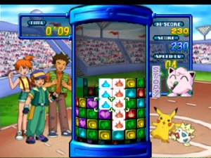Pokémon Puzzle League es un juego de rompecabezas basado en Pokémon al estilo de Panel de Pon. En este juego, se te proporcionan varios tipos de bloques con los que puedes mover horizontalmente para crear una línea de 3 o más cuadrados. Al hacer esto, eliminas los cuadrados y los bloques de arriba caen.
