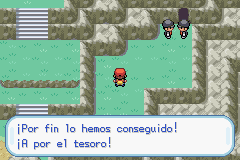 Para que te dejen pasar tendrás que darles una buena tunda. No olvides que en el interior hay que mover algunas rocas, así que procura llevar algún Pokémon que sepa Fuerza. Cuando llegues al último sótano... ahí está el
