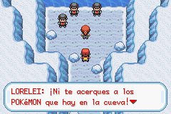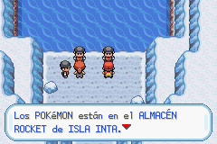 En la Cueva Glaciada, Lorelei está manteniendo un enfrentamiento contra los del Team Rocket. Al parecer se dedican a comerciar con los Pokémon que atrapan en la cueva, así que echa una mano a Lorelei y dales una buena zurra. En cuanto pierdan, dirán que los Pokémon que capturan en la cueva los llevan al Almacén Rocket de Isla Inta.