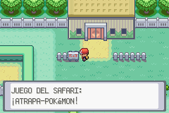 Bueno, ahora toca ir al norte de la ciudad y entrar en la Zona Safari. Dentro verás dos mostradores; en uno te explican las reglas para capturar Pokémon, y en el otro te cobran la entrada y te dan todo lo necesario: Safari Balls, Cebo y Piedras.