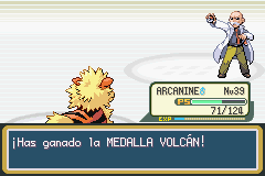 Con la LL. SECRETA que acabas de encontrar ya puedes entrar en el gimnasio y luchar contra el Líder Blaine. Cuando venzas a su equipo de Pokémon de Fuego, te harás con la Medalla Volcán.