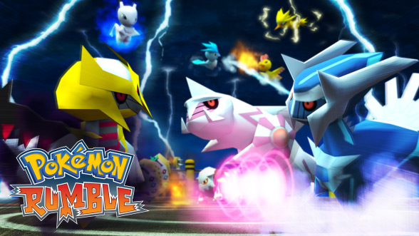 Pokémon Rumble (乱戦!ポケモンスクランブル) es un juego de acción y combate lanzado para WiiWare en 2009. En este título, los jugadores controlan juguetes Pokémon mecánicos que participan en batallas dentro de diferentes niveles y torneos.