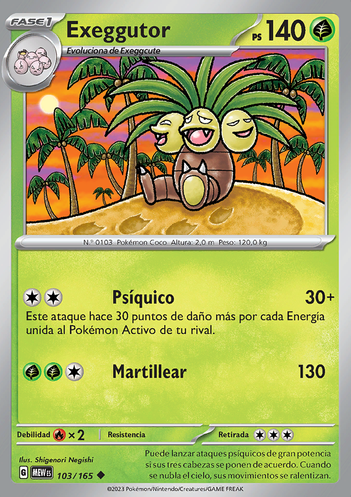 Psíquico Este ataque hace 30 puntos de daño más por cada Energía unida al Pokémon Activo de tu rival. |