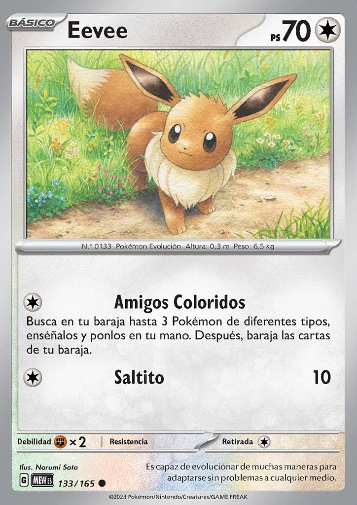 Amigos Coloridos Busca en tu baraja hasta 3 Pokémon de diferentes tipos, enséñalos y ponlos en tu mano. Después, baraja las cartas de tu baraja. |