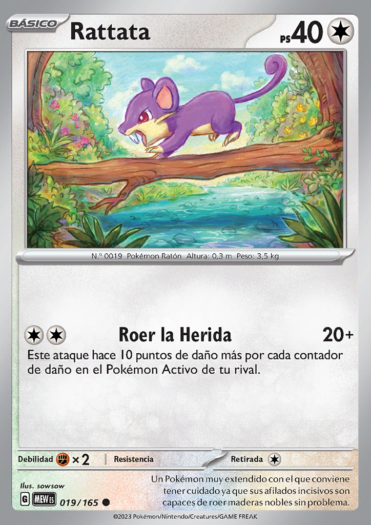 Roer la Herida Este ataque hace 10 puntos de daño más por cada contador de daño en el Pokémon Activo de tu rival. |