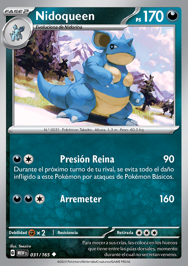Presión Reina Durante el próximo turno de tu rival, se evita todo el daño infligido a este Pokémon por ataques de Pokémon Básicos. |